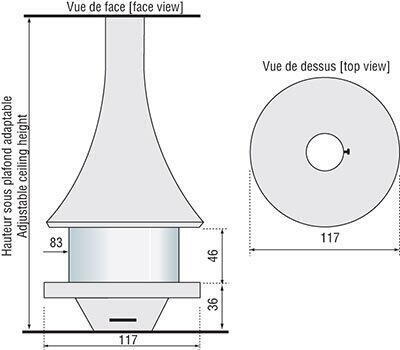 • Чертеж для Дровяной камин EVA 992 центральный подвесной лакированный со стеклом