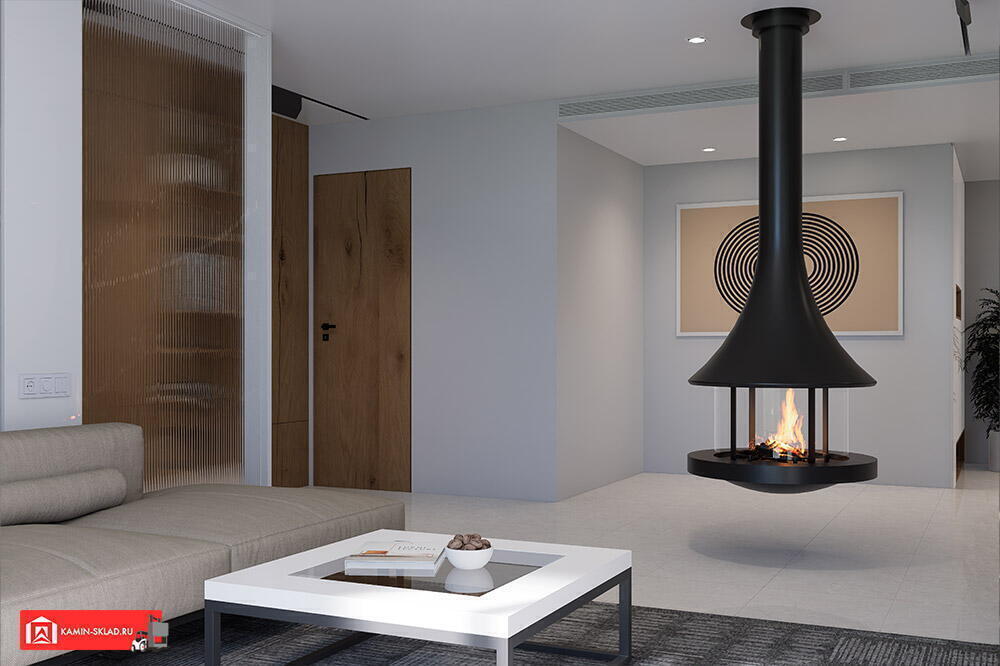 -Дровяной камин EVA 992 центральный подвесной со стеклом